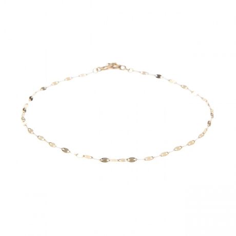 プレスをかけたようなパーツを連ねたデザインが、個性をアピールするブレスレットです。独特な光の反射が存在感を放ち、スタイリングのアクセントになってくれます。シンプルなのでコーディネートを選ばず様々なシーンに活躍。少し物足りない時に手軽に加えられるアイテムです。