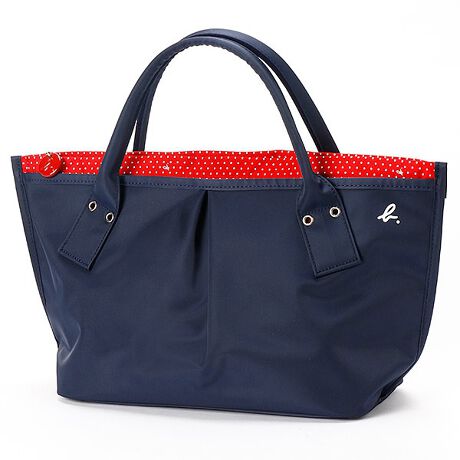 内装のドット&b.プリントと外のナイロンとのカラーコンビが特徴のかわいらしいトートです。
