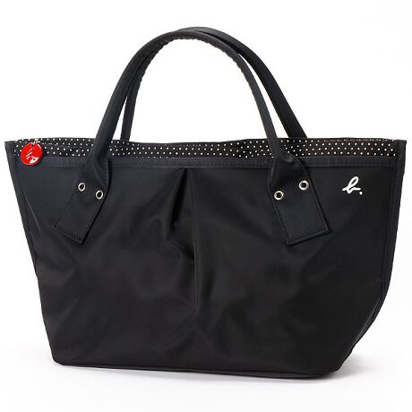 内装のドット&b.プリントと外のナイロンとのカラーコンビが特徴のかわいらしいトートです。