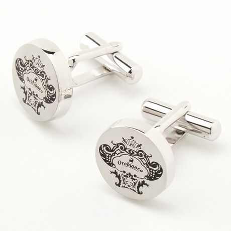 オロビアンコ(Orobianco)(雑貨)のカフス。ラウンドタイプのシンプルなカフスです。オロビアンコのブランドロゴ『コロナ』が全面にデザインされたインパクト大のカフスです。[型番:61OR0072]