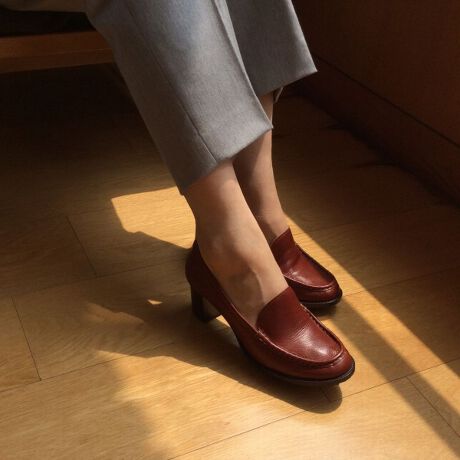 モカシンヒールパンプス