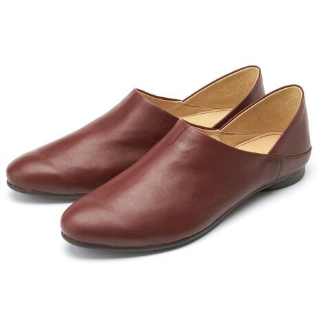 コロンとしたラストが可愛いスリッポンシューズ。かかとを踏めば、バブーシュタイプにも。