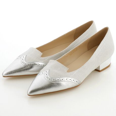 トゥ先のウイングチップデザインが新鮮なデザインパンプス。メンズライクなウイングチップとオニグリカットデザインをポインテッドトゥパンプスに合わせて、柔らかく女性らしい印象に。