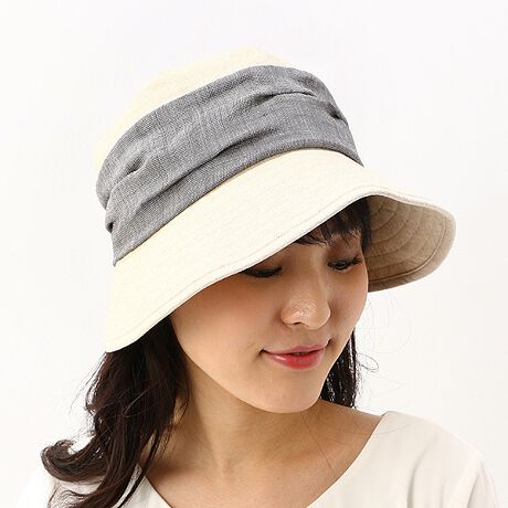 後ろつばが割れたデザインのエミリー型のハットです。後ろのつばが短いので顔を上げても首に当たりにくく快適。切り替えの素材感もオシャレなハットです。
